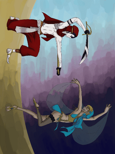 小さな爪先が紅い地面を踏むと、光る線は輝きを増し、ポッカリと奈落に導く穴が現れた。